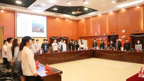 活动开始,同学们集体奏唱中华人民共和国国歌。随后,赵日海老师为获得2020年度本科奖学金的孙美珍、马士清、林雪绮、李柏谚同学颁发奖学金并致辞。