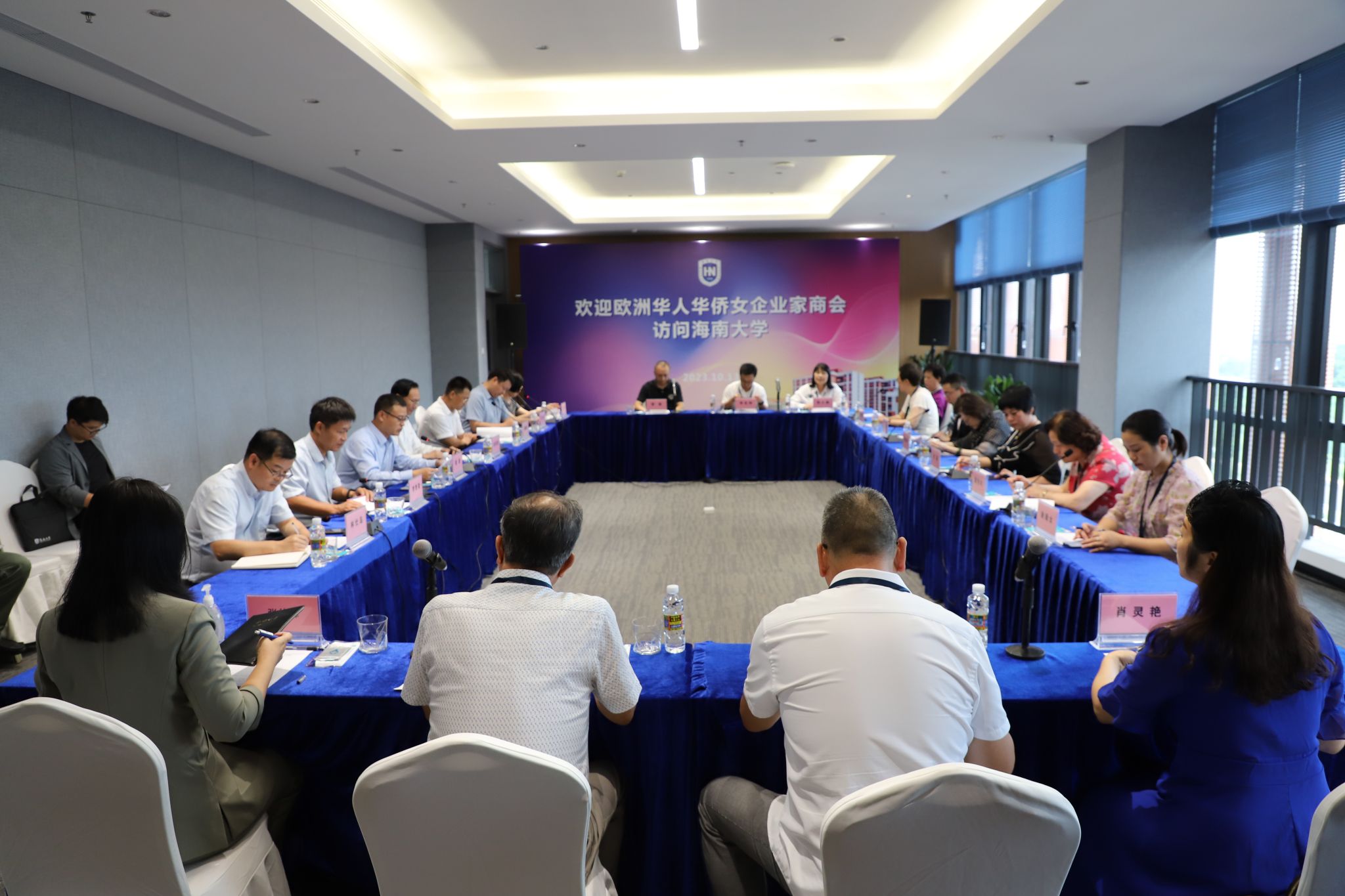 欧洲华侨华人女企业家访问团成员;海口市委统战部相关负责人;校党委常委、统战部部长谭勇,相关单位、部门负责人参加座谈会。