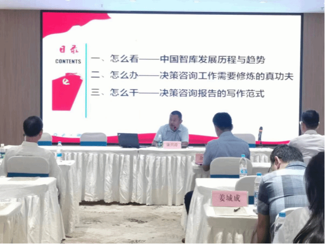 会上,康兴涛副教授作了《咨政报告的选题与写作》的主题报告。康兴涛副教授从咨政报告怎么看、怎么办和怎么干等三个问题引入,回顾了中国智库发展历程与趋势,并以被省委领导批示和省政协采用的社情民意为例,深入剖析了决策咨询工作需要培养提升的意识和能力。结合实际案例,从选题和结构,深入浅出地讲述了决策咨询报告写作规范和要点。